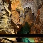 Wychodzimy więc na górę, po to by stamtąd znów zejść niżej. To właśnie tu znajduje się jedno z tych ślicznych, krystalicznych jeziorek. Z ostatniego balkoniku widokowego przewodnik pokazuje zejście drabiną do samej wody oferując kąpiel haha. Tutaj zapewne węgierskim turystom przewodnik opowiada jakąś historię i przekazuje więcej informacji o jaskini. Nam niestety nic nie przekazano, szkoda. Przy ostatnim balkoniku znajdują się najładniejsze i najbardziej spektakularne formy skalne. Pełny spacer jaskinią zajmuje około 40 minut. Pomimo, że jaskinia w obie strony (łącznie z korytarzem kolejki) liczy sobie około 700 m to z uwagi na nazwijmy to dość ryzykowne schody przejście nią zajmuje nieproporcjonalnie więcej czasu, niż mogłoby się wydawać. Jaskinia Rakoczi nie jest tak duża jak opisana już wcześniej przez nas Jaskinia Baradla. Nie jest również tak bogata w stalagmity, stalaktyty i inne formy skalne. Nie ma tu również muzycznego pokazu w pięknej skalnej hali. Jaskinia Rakoczego ma ma jednak swój klimat i urok. Dodatkowo te szmaragdowe jeziorka podnoszą jej walory. Zresztą spacer schodami i kładkami również urozmaica zwiedzanie jaskini. Rakoczi Barlang zlokalizowana jest nie tak daleko od Aggtelek, więc zwiedzając Baradla koniecznie trzeba zajechać do Jaskini Rakoczego.